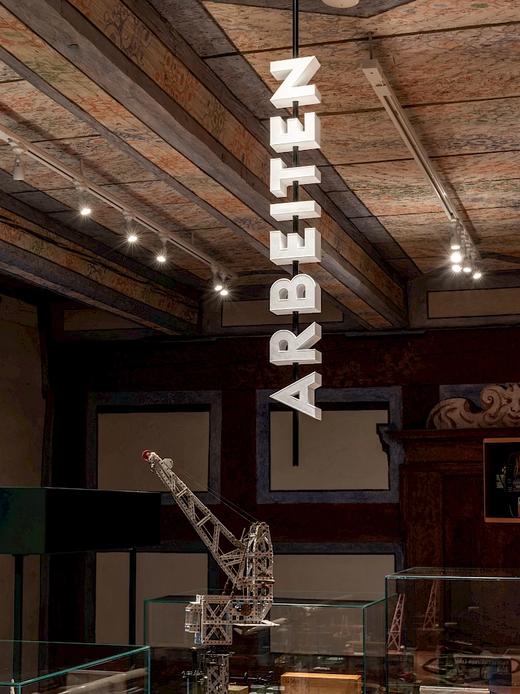 Der Umbau des Museums benötigte eine völlig neue Wegführung für das verwinkelte Gebäude mit dem Anspruch eines spielerischen Eindrucks passend zur Gestaltung der Dauerausstellung.