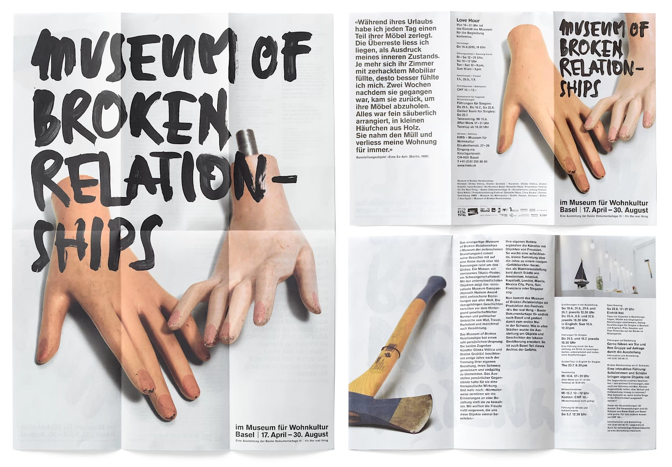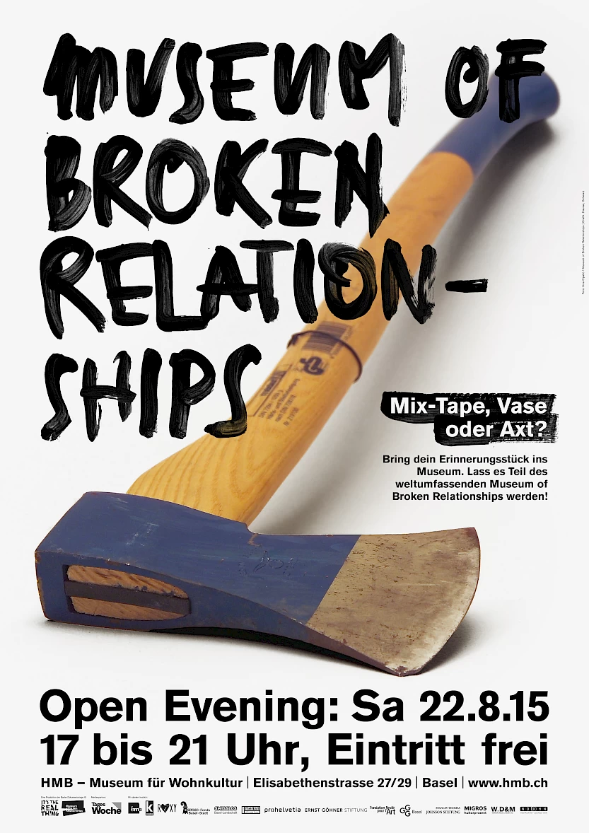 This traveling exhibition places over 100 break-ups into a museal context and in 2015 it was on display in Basel. Personal objects and the related story of the broken relationship are put on display. This emotional collection previously traveled through cities like Amsterdam, Istanbul, Capetown, London, Manila, Mexico City, Paris, San Francisco or Singapore.