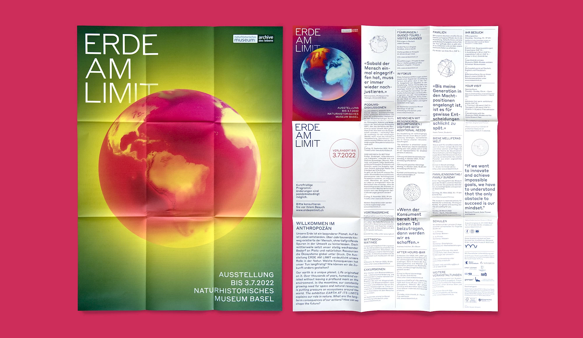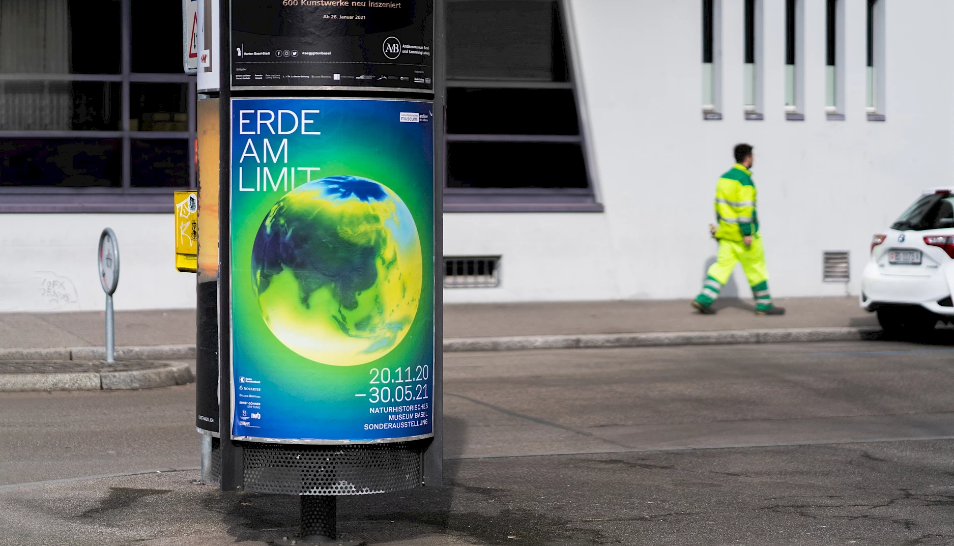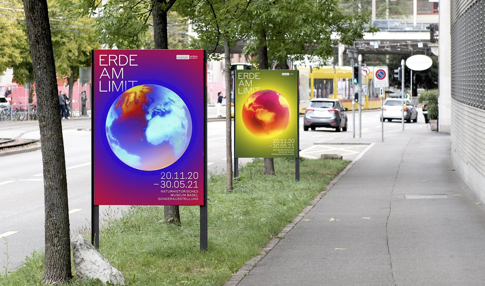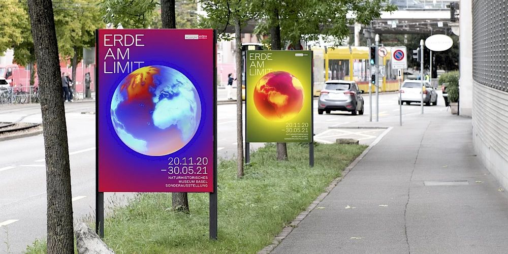 L'exposition temporaire "La Terre aux limites" montre comment l'homme influence les écosystèmes de notre planète et quelles en sont les conséquences. La campagne de communication suscite la curiosité par des univers de couleurs inhabituels et très contrastés et vise à interpeller le spectateur sur le plan émotionnel. Une projection scientifique du climat de la Terre en l'an 2100 a servi de base au spectre des couleurs.